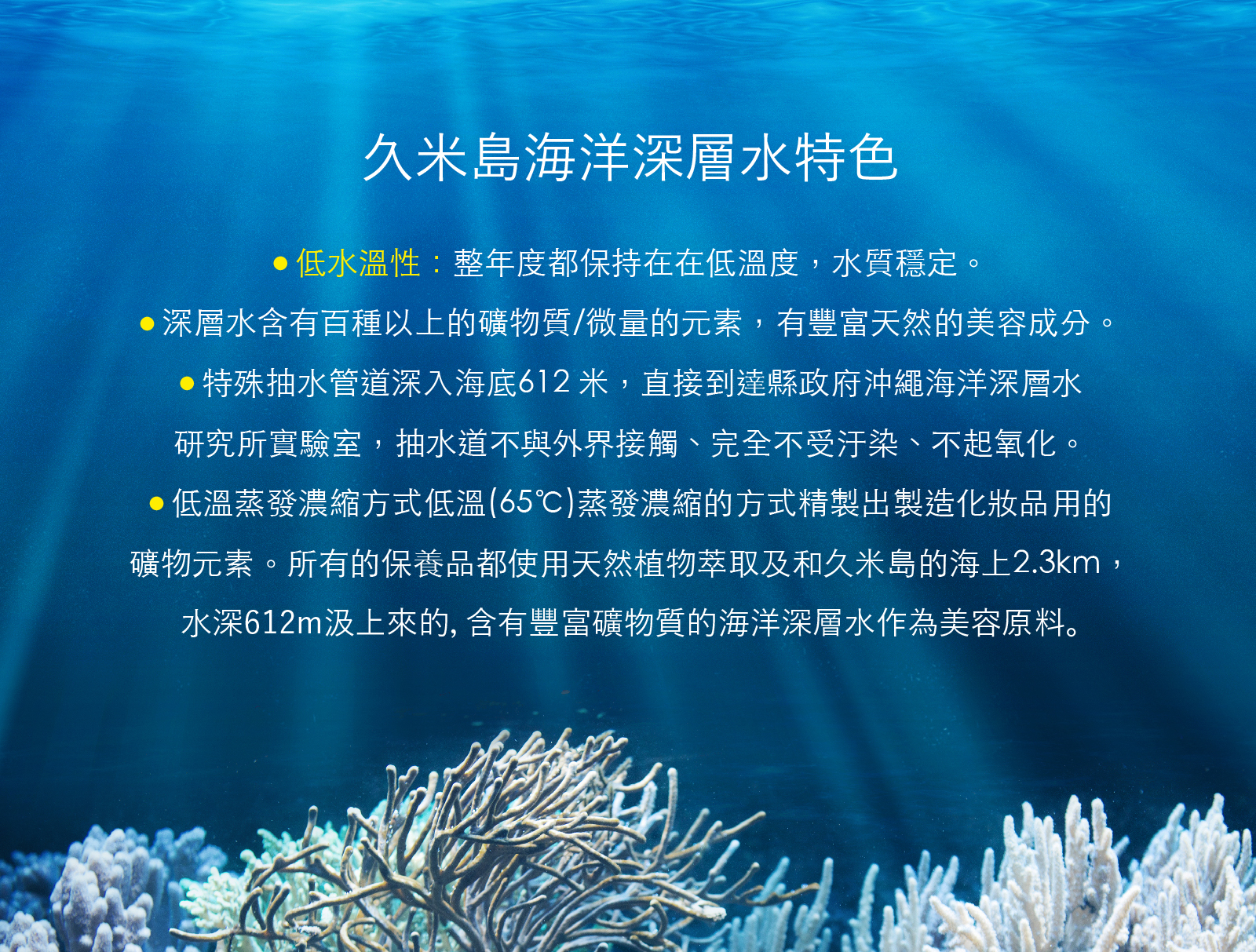 BRAND MESSAGE DESIGN CONCEPT BRAND MESSAGE DESIGN CONCEPT BRAND MESSAGE | 品牌信息 何謂守護之水? 久米島海洋深層水特色 使用久米島海洋深層水的優點 久米島海洋深層水品牌標章